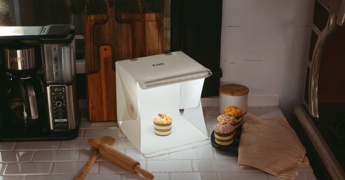 The world's first foldable lightbox. The Foldio1 is our first Foldio model that is 25.4 cm when folded. It utilizes a dual LED system, powered through USB. Four velvet type backdrops are included: white, grey, black, and green