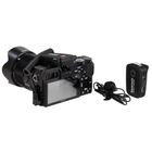Extremely small, feather-weight system that delivers broadcast quality sound, the kit comes with a single clip-on wireless transmitter with built-in mic, a professional lavalier microphone, an ultra compact dual channel receiver that mount to the shoe of your camera.